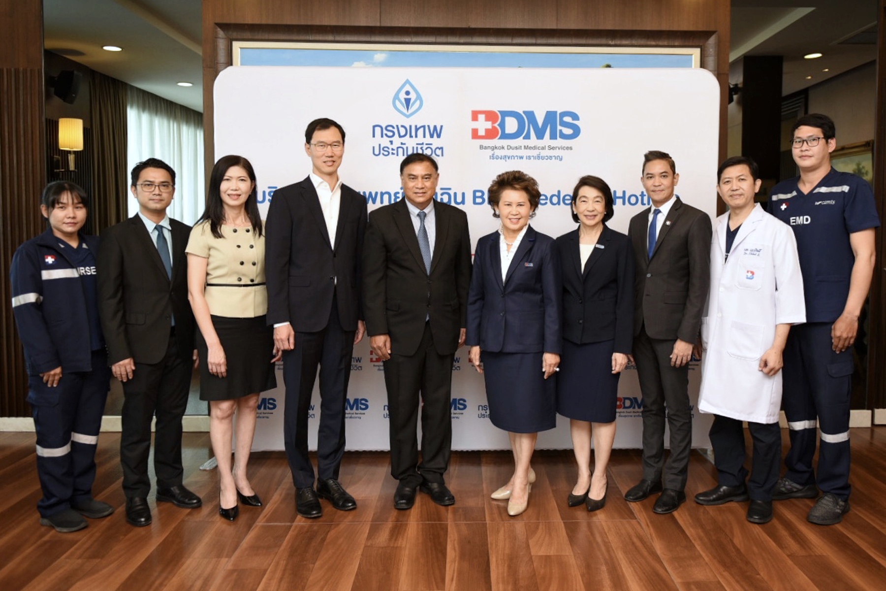 ด้าน นางนฤมล น้อยอ่ำ รองกรรมการผู้อำนวยการใหญ่อาวุโสและประธานเจ้าหน้าที่บริหารด้านการเงิน บริษัท กรุงเทพดุสิตเวชการ จำกัด (มหาชน) หรือ BDMS เปิดเผยถึงความร่วมมือกับ บมจ. กรุงเทพประกันชีวิต ในครั้งนี้ว่า “นับเป็นการเปิดฉากปี 2564 ด้วยความสำเร็จอีกขั้นของ BDMS ที่ได้ร่วมมือกับ บมจ.กรุงเทพประกันชีวิต ในการให้บริการการแพทย์ฉุกเฉินตลอด 24 ชั่วโมงแก่กลุ่มลูกค้าของ บมจ.กรุงเทพประกันชีวิต ให้ได้รับบริการทางการแพทย์แบบเชิงรุกตามแนวทางมาตรฐานระดับสากล ตั้งแต่ระดับขั้นพื้นฐาน BLS ระดับสูง ALS ระดับวิกฤติ Critical Care และระดับที่ต้องได้รับการดูแลแบบพิเศษขั้นสูงสุด Specialty Care โดยมีเป้าหมายเพื่อช่วยชีวิตผู้ป่วย ให้ได้รับการดูแลรักษาอย่างทันท่วงที รวดเร็ว และปลอดภัย”