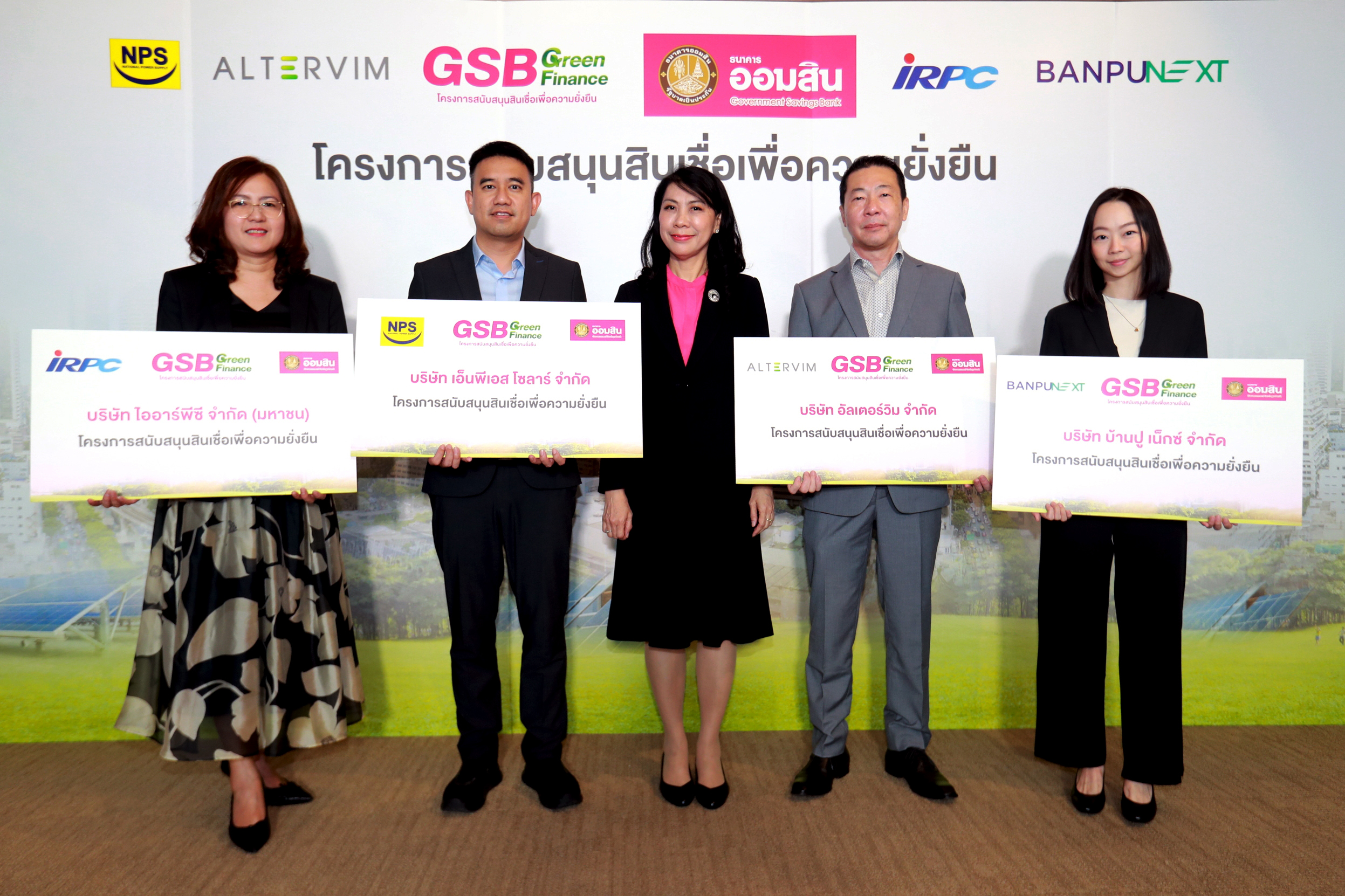 โดยล่าสุด ธนาคารออมสินได้ปล่อยสินเชื่อตามโครงการสนับสนุนสินเชื่อเพื่อความยั่งยืนให้แก่ผู้ประกอบการขนาดใหญ่ ซึ่งเป็นผู้ที่ดำเนินธุรกิจอย่างมีความรับผิดชอบต่อสิ่งแวดล้อม สังคม ภายใต้หลักธรรมาภิบาลที่ดี จำนวน 4 ราย วงเงินรวม 7,850 ล้านบาท ประกอบด้วย บริษัท ไออาร์พีซี จำกัด (มหาชน) วงเงิน 5,000 ล้านบาท เพื่อลงทุนในโครงการปรับปรุงประสิทธิภาพโรงกลั่น และปรับปรุงคุณภาพน้ำมันดีเซลตามมาตรฐานยูโร 5 ที่จะช่วยลดปัญหามลภาวะฝุ่นละออง PM 2.5 เป็นไปตามนโยบายสู่การเป็นโรงงานสีเขียว (Eco Factory) บริษัท อัลเตอร์วิม จำกัด วงเงิน 1,300 ล้านบาท เพื่อลงทุนในโครงการติดตั้งระบบ Solar ภายใต้สัญญาซื้อขายไฟฟ้า (Private PPA) มุ่งเน้นการจัดการพลังงานให้กับลูกค้าในเครือซีพีเป็นหลัก เป็นการยกระดับศักยภาพการแข่งขันและพัฒนาอย่างยั่งยืน รวมถึงลดการปล่อยคาร์บอน และสร้างโอกาสคาร์บอนเครดิต ส่งเสริมการใช้พลังงานสะอาด