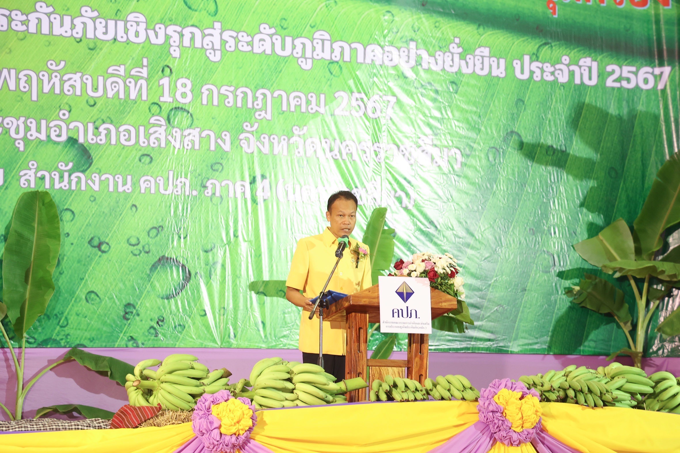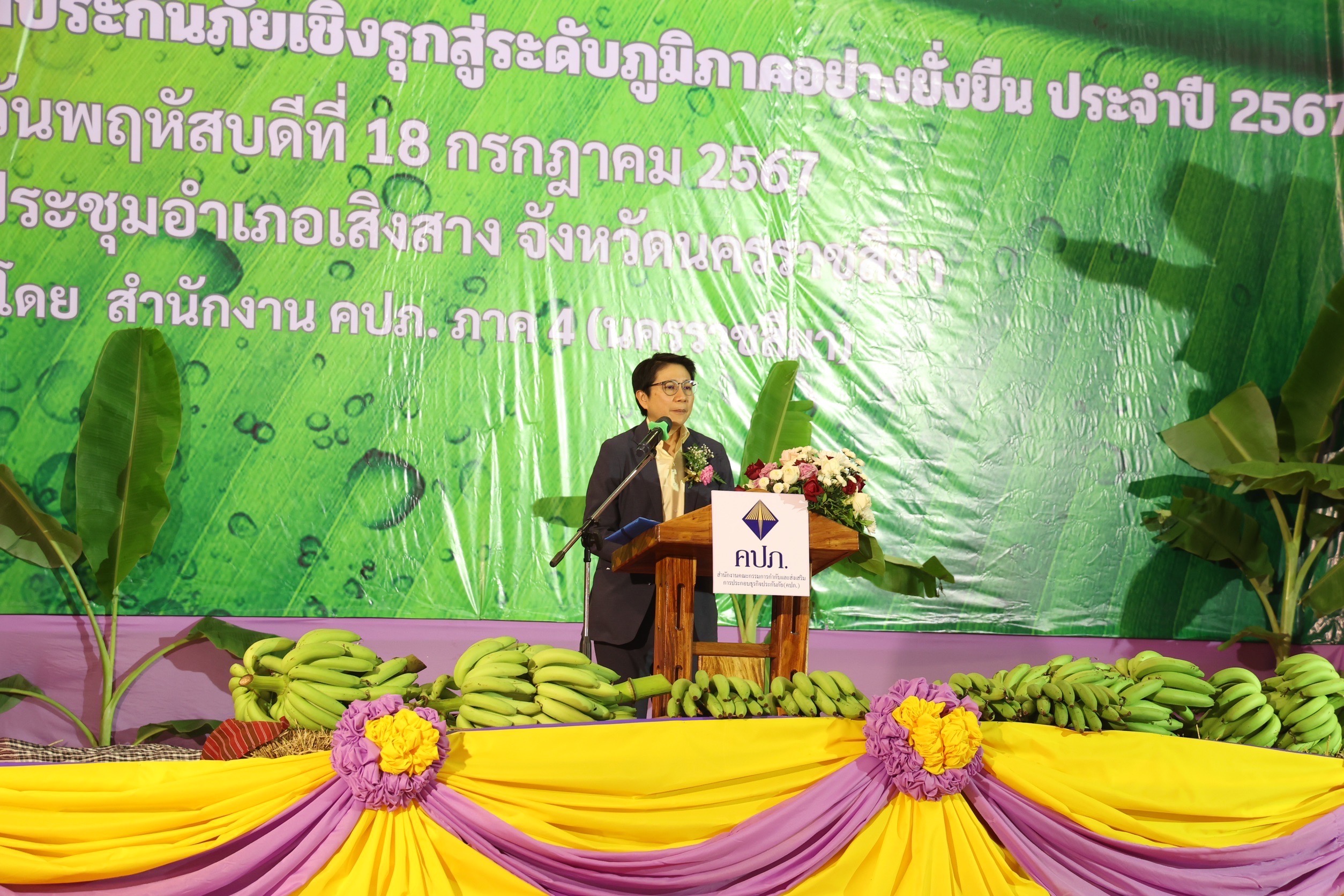 นางสาววสุมดี วสีนนท์ รองเลขาธิการ ด้านกำกับคนกลางและประกันภัยภูมิภาค สำนักงานคณะกรรมการกำกับและส่งเสริมการประกอบธุรกิจประกันภัย (สำนักงาน คปภ.) เป็นประธานเปิดโครงการส่งเสริมผลิตภัณฑ์ประกันภัยเชิงรุกสู่ระดับภูมิภาคอย่างยั่งยืน ประจำปี 2567 “การประกันภัยกล้วยหอมทอง” โดยมี นายชัยวัฒน์ ชื่นโกสุม ผู้ว่าราชการจังหวัดนครราชสีมา ให้เกียรติกล่าวต้อนรับ ณ หอประชุมอำเภอเสิงสาง จังหวัดนครราชสีมา