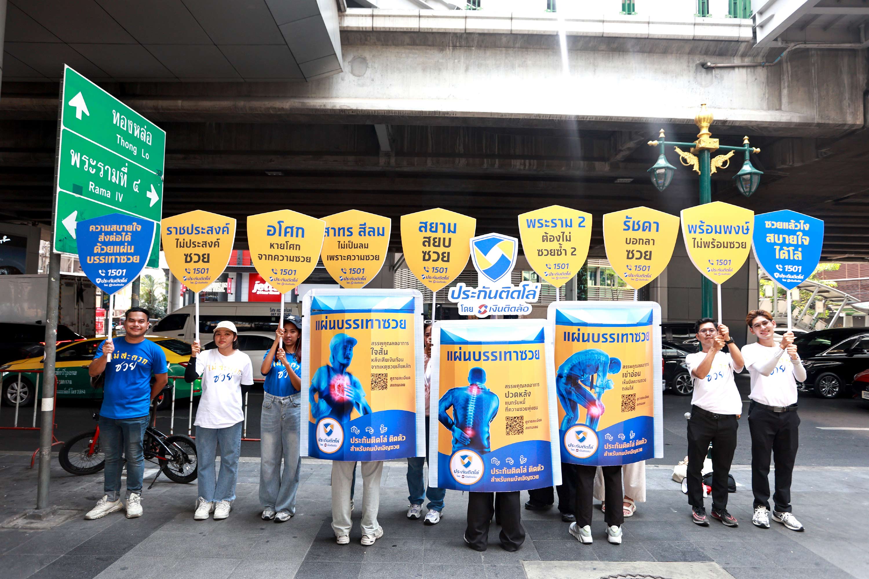 นางอาฑิตยา พูนวัตถุ ผู้บริหารด้านธุรกิจประกันภัย กล่าวว่า เป้าหมายหลักของประกันติดโล่คือการผลักดันให้คนไทยเข้าถึงความคุ้มครองได้อย่างครอบคลุมและทั่วถึง เพื่อช่วยบรรเทาภาระทางการเงินจากเหตุการณ์ไม่คาดฝันที่อาจเกิดขึ้นได้ทุกวัน โดยประกันติดโล่ได้ออกแคมเปญ “บรรเทาซวย” ที่นำคำว่า “ซวย” ซึ่งถือเป็นคำติดปากที่ทุกคนคุ้นเคย มาต่อยอดสู่ไอเดีย “แผ่นบรรเทาซวย” ซึ่งออกแบบให้คล้ายแผ่นแปะแก้ปวด แต่มีการเพิ่มสรรพคุณที่เชื่อมโยงกับปัญหาทางการเงินที่มักมาพร้อมกับความเดือดร้อน เช่น “ลดอาการปวดหลัง” จากการแบกรับหนี้ หรือ “ลดอาการใจสั่น” หลังเสียเงินก้อนกะทันหัน มาพร้อมกับประกันอุบัติเหตุส่วนบุคคลฟรี 30 วัน เพื่อส่งมอบความสบายใจและโอกาสในการเตรียมพร้อมสำหรับรับมือกับเหตุการณ์ไม่คาดฝัน โดยได้ต่อยอดด้วยกิจกรรม Troop Marketing แจก “แผ่นบรรเทาซวย” ไปยังพื้นที่ต่างๆ ทั่วกรุงเทพฯ ที่มีความเสี่ยงสูง เช่น ถนนพระราม 2 แยกรัชดา-ลาดพร้าว สี่แยกอโศก สี่แยกราชประสงค์ และถนนสีลม เพื่อสื่อสารให้ประชาชนตระหนักถึงความสำคัญของประกันภัย
