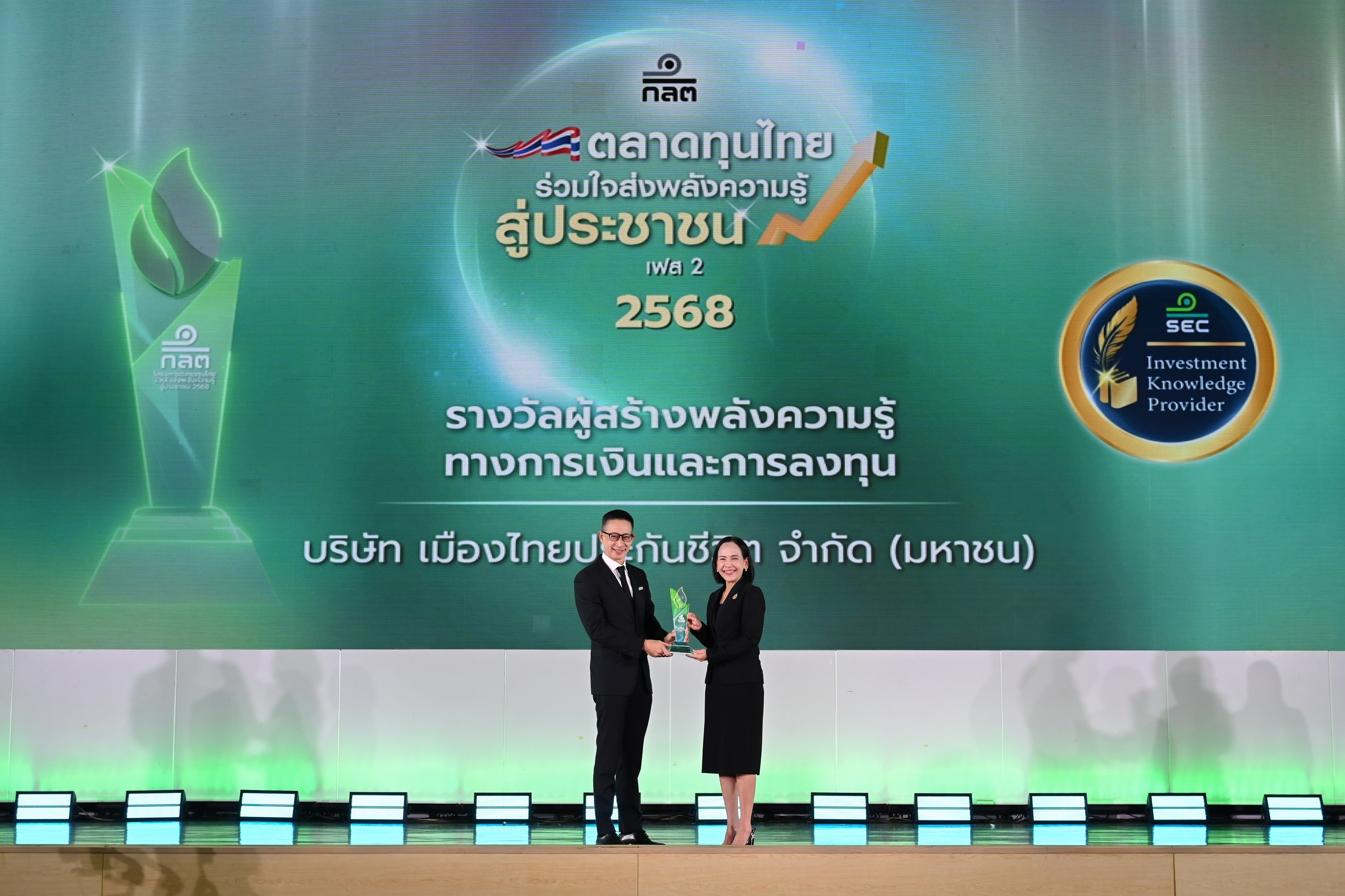 บริษัท เมืองไทยประกันชีวิต จำกัด (มหาชน) คว้า 4 รางวัล จากโครงการ “ตลาดทุนไทยร่วมใจส่งพลังความรู้ สู่ประชาชน เฟส 2 ปี 2568” ซึ่งจัดโดยสำนักงานคณะกรรมการกำกับหลักทรัพย์และตลาดหลักทรัพย์ (ก.ล.ต.) สะท้อนบทบาทขององค์กรในการขับเคลื่อนการพัฒนาความรู้ด้านการเงิน การประกัน และการลงทุน (Financial and Insurance Literacy) ให้แก่ประชาชนไทยอย่างเป็นรูปธรรม ภายใต้กรอบการพัฒนาที่ยั่งยืน (ESG) และความรับผิดชอบต่อสังคมในการเสริมสร้างภูมิคุ้มกันทางการเงินในระยะยาว