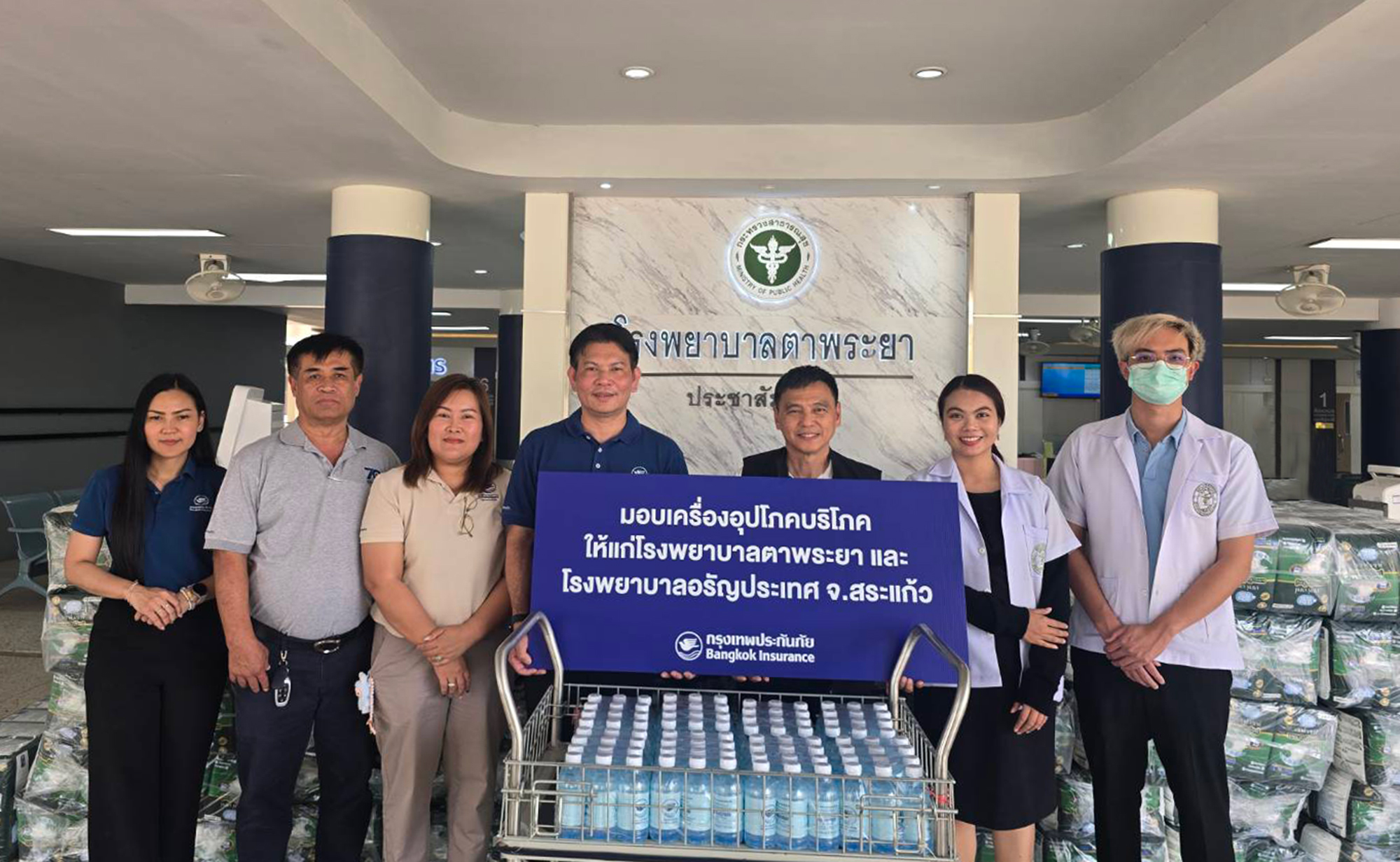บริษัท กรุงเทพประกันภัย จำกัด (มหาชน) ร่วมกับมูลนิธิกรุงเทพประกันภัย สนับสนุนการดำเนินงานด้านสาธารณสุขในพื้นที่ต่างๆ อย่างต่อเนื่อง โดยนายสถาพร ฤกษ์ดี ผู้จัดการภาคตะวันออก ธุรกิจสาขา เป็นผู้แทนบริษัทฯ มอบเครื่องอุปโภคบริโภคที่จำเป็น อาทิ น้ำดื่ม ผ้าอ้อมผู้ใหญ่ ให้แก่โรงพยาบาลอรัญประเทศ โดยมีนายเชิดชัย ศิริมหา รองผู้อำนวยการโรงพยาบาลอรัญประเทศ เป็นผู้แทนรับมอบ ณ โรงพยาบาลอรัญประเทศ พร้อมกันนี้ บริษัทฯ ได้มอบเครื่องอุปโภคบริโภคให้แก่โรงพยาบาลตาพระยา โดยมีนายนพดล คำแสน รองผู้อำนวยการโรงพยาบาลตาพระยา เป็นผู้แทนรับมอบ ณ โรงพยาบาลตาพระยา จังหวัดสระแก้ว เมื่อวันที่ 6 กุมภาพันธ์ 2569