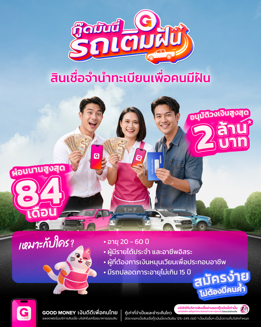 สำหรับผู้ที่สนใจ สามารถศึกษารายละเอียดและยื่นขอสินเชื่อ “กู๊ดมันนี่ รถเติมฝัน” ผ่านแอปพลิเคชัน Good Money by GSB ได้แล้ววันนี้ ทั้งระบบปฏิบัติการ iOS และ Android