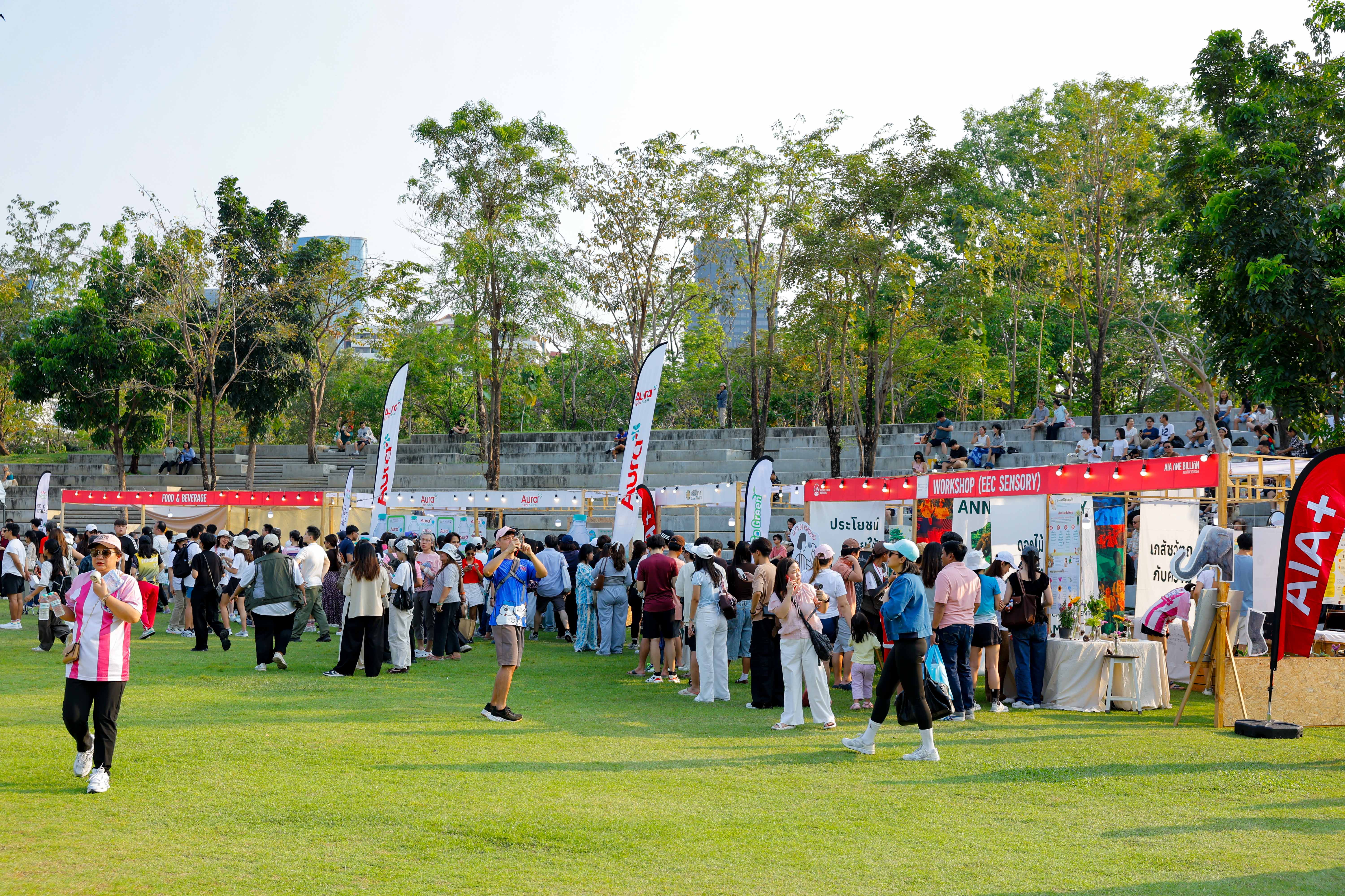 เอไอเอ ประเทศไทย ร่วมกับพันธมิตรด้านความยั่งยืนอย่าง กรุงเทพมหานคร และศูนย์สิ่งแวดล้อมศึกษา (EEC) จัดงาน AIA+ Go Green Festival – Grooving in the Park ณ สวนเบญจกิติ ภายใต้แนวคิดการผสานสุขภาพกาย สุขภาพใจ และสิ่งแวดล้อมเข้าด้วยกัน เพื่อส่งเสริมการใช้ชีวิตอย่างสมดุลและร่วมสร้างสังคมที่ยั่งยืน ผ่านกิจกรรมหลากหลายที่เปิดโอกาสให้ผู้เข้าร่วมดูแลตนเองทุกมิติไปพร้อมกับการดูแลโลก