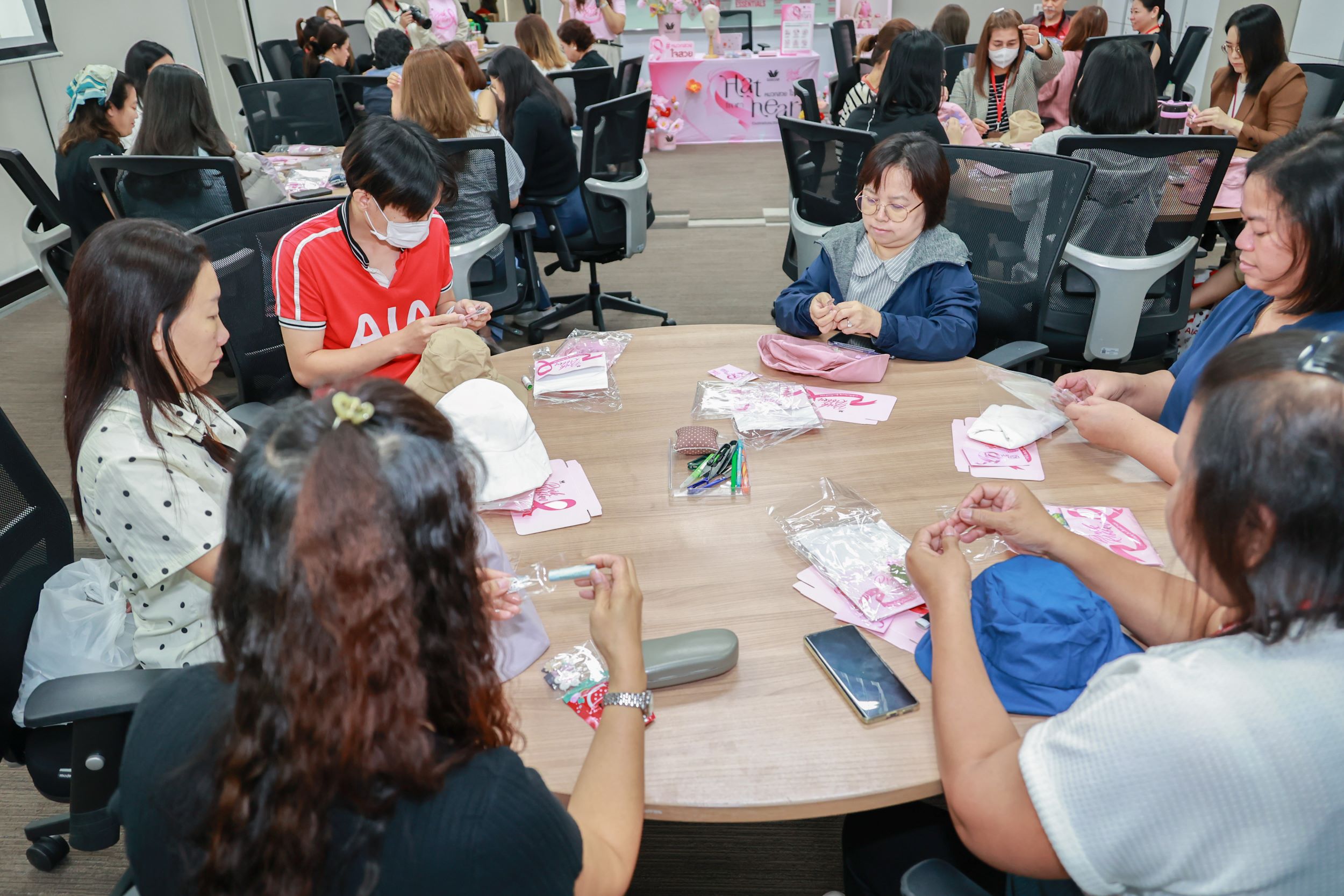 เอไอเอ ประเทศไทย จัดกิจกรรม “LOVE YOUR VIBES” ชวนพนักงานมาเติมพลังดี ๆ ทั้งสุขภาพ ไลฟ์สไตล์ และการดูแลตัวเองแบบรอบด้าน ในเดือนแห่งความรักที่ผ่านมา โดยมีคุณนิคฮิล แอดวานี ประธานเจ้าหน้าที่บริหาร พร้อมคณะผู้บริหารระดับสูงเข้าร่วมกิจกรรมกับเพื่อนพนักงาน ซึ่งงานนี้จัดเต็มด้วยกิจกรรมหลากหลายที่สนุก เข้าถึงง่าย และตอบโจทย์ทุกสาย ไม่ว่าจะสายสุขภาพ สายกิจกรรม สายชอป หรือสายมู พร้อมจับมือวาโก้ จัดกิจกรรมเพื่อช่วยเหลือผู้ป่วยมะเร็งทรวงอก ผ่านแคมเปญ “LOVE THROUGH CARE: Hat for Heart หนึ่งหมวก หนึ่งกำลังใจ” ที่เปิดให้พนักงานตกแต่งหมวกสุดสร้างสรรค์เพื่อมอบและเป็นกำลังใจให้แก่ผู้ป่วยมะเร็ง ต่อด้วยความรู้ด้านสุขภาพจากกิจกรรม “LOVE YOUR WELLBEING” Health Talk ตอน “มะเร็งวายร้าย…วัยรัก” โดยผู้เชี่ยวชาญด้านสูตินรีเวช ให้ข้อมูลสำคัญเกี่ยวกับโรคมะเร็งที่พบในผู้หญิงให้พนักงานรับชมผ่านช่องทางออนไลน์