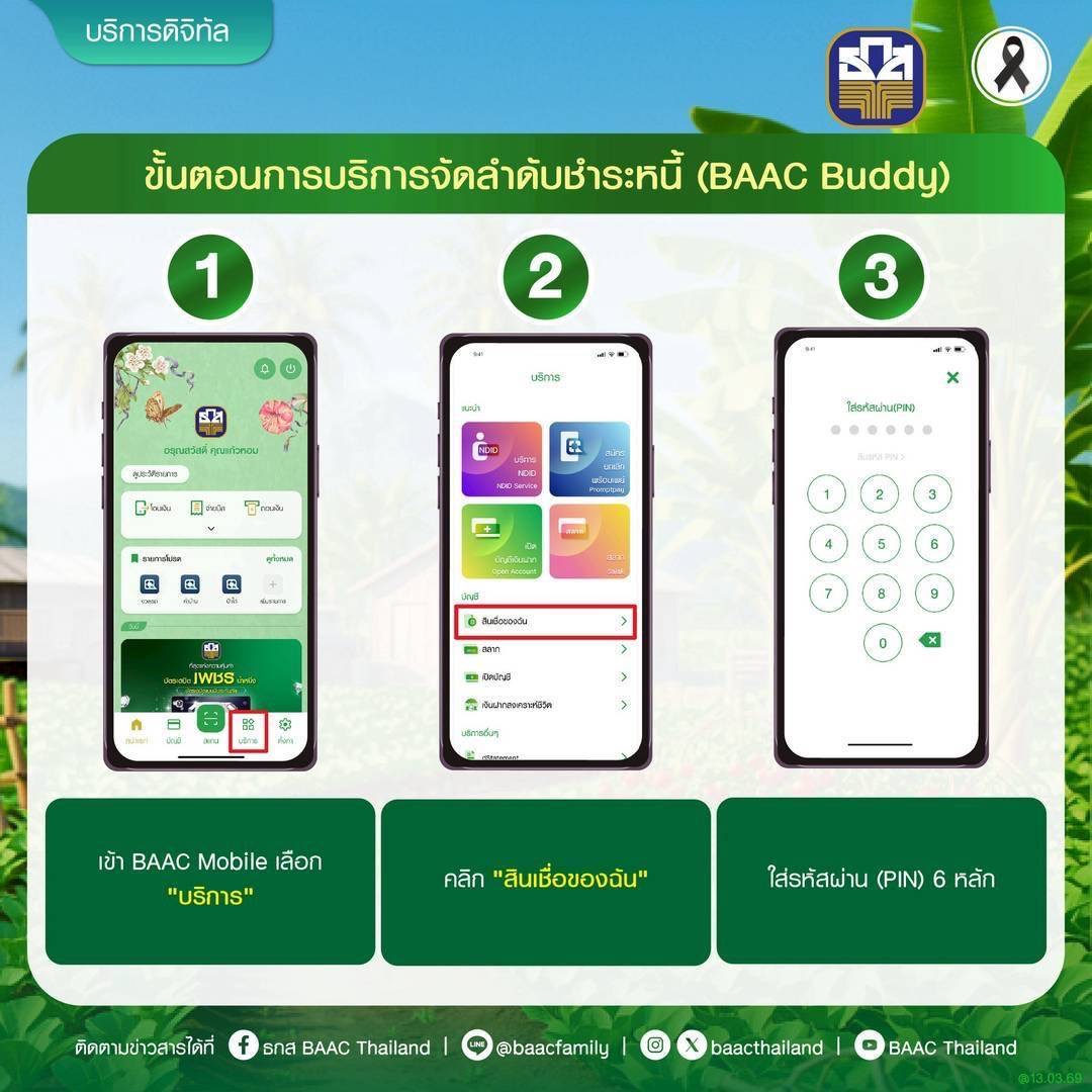 ทั้งนี้ ลูกค้าสามารถใช้งานฟีเจอร์ “BAAC Buddy” ผ่านแอปพลิเคชัน BAAC Mobile ได้แล้วตั้งแต่วันนี้ โดยไม่มีค่าธรรมเนียมเพิ่มเติม สอบถามรายละเอียดเพิ่มเติมที่ Call Center 02 555 0555 หรือ ธ.ก.ส. ทุกสาขาทั่วประเทศ