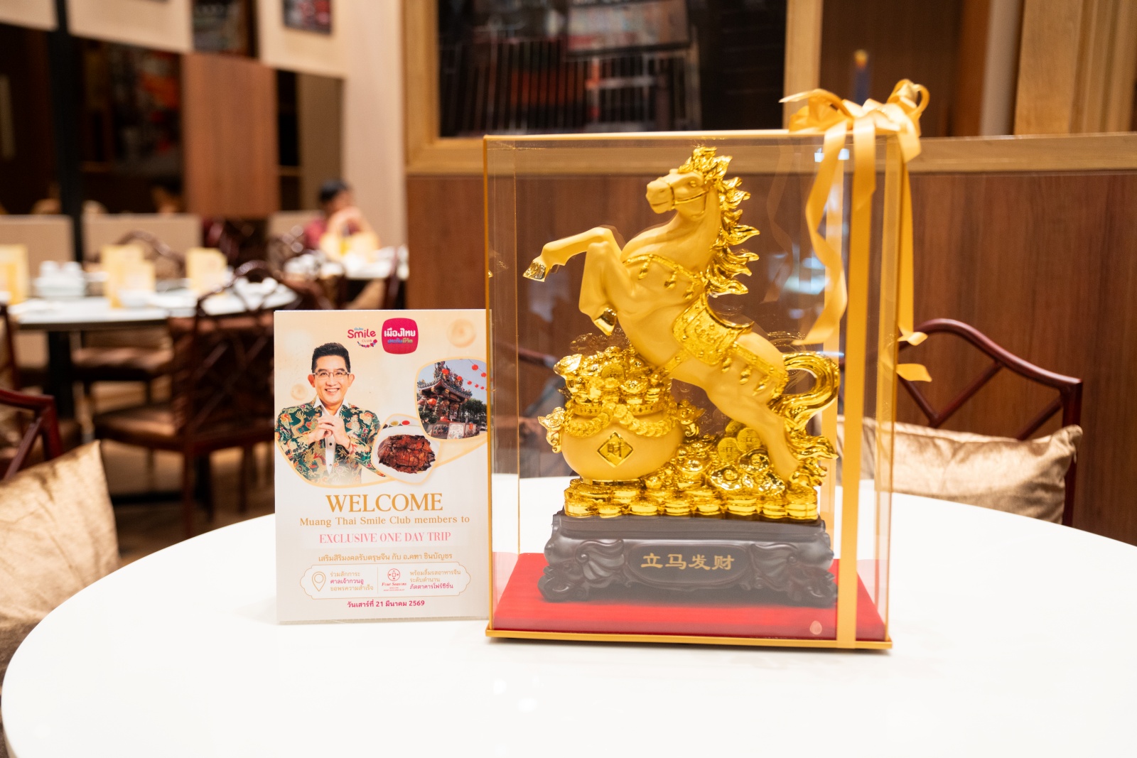 พร้อมกันนี้เมืองไทยสไมล์คลับส่งมอบของที่ระลึก “ม้าทองมงคล” ให้แก่สมาชิกฯ ทุกท่าน เพื่อเป็นสัญลักษณ์แห่งความโชคดีและความรุ่งเรืองตลอดปี